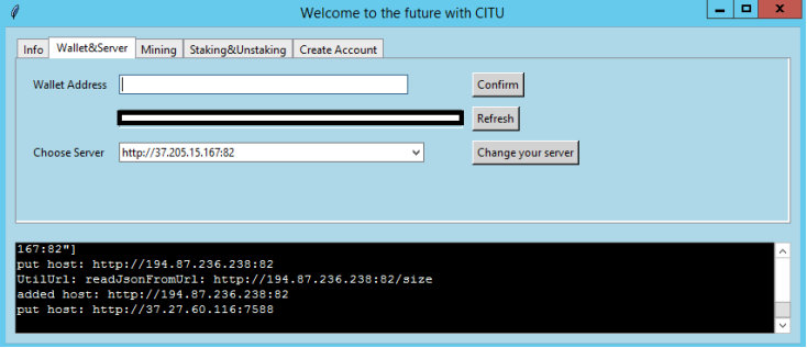 Paste the generated address into "wallet address" and confirm. Choose server and click "change your server".